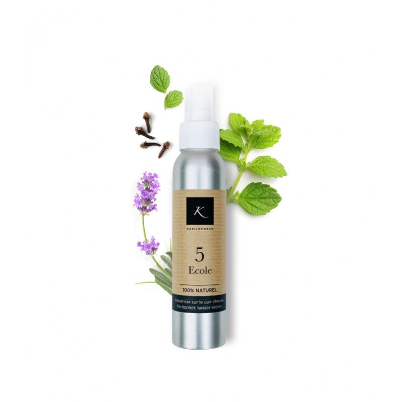 Spray capillaire à base d'hydrolats bi-distillés de Menthe poivrée, de Lavandin super, de Giroflier et de Poivre noir.